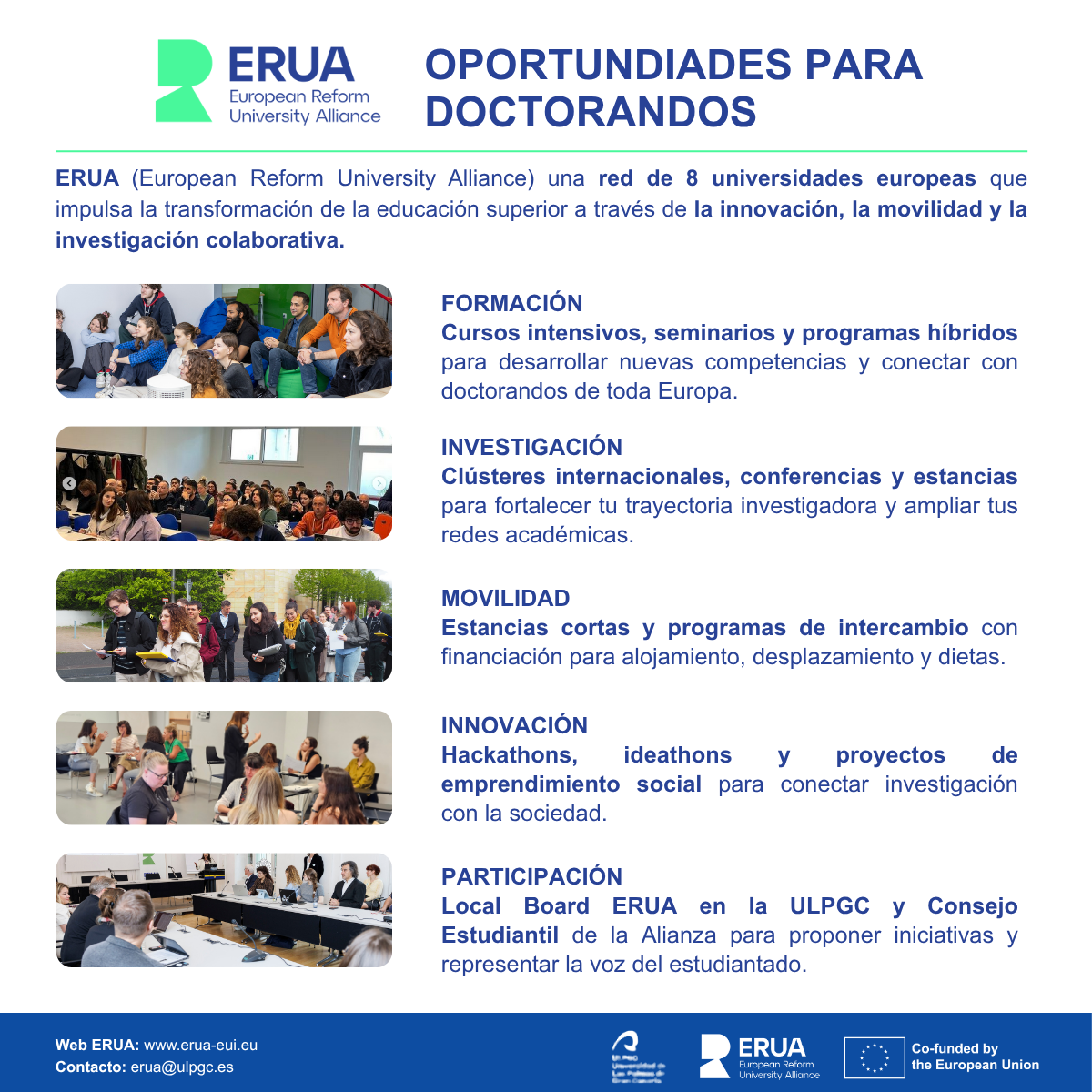 24 de octubre de 2025 Oportunidades ERUA para doctorandos La Universidad de Las Palmas de Gran Canaria (ULPGC) forma parte de la Euro...